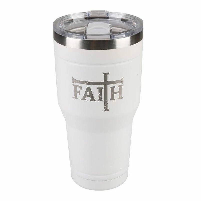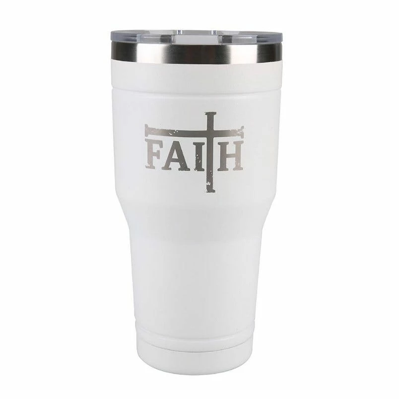 Lincoln Outfitters “Faith Over Fear” 30 oz. Religious Tumbler, White – 89-643-0204 – Tumblers