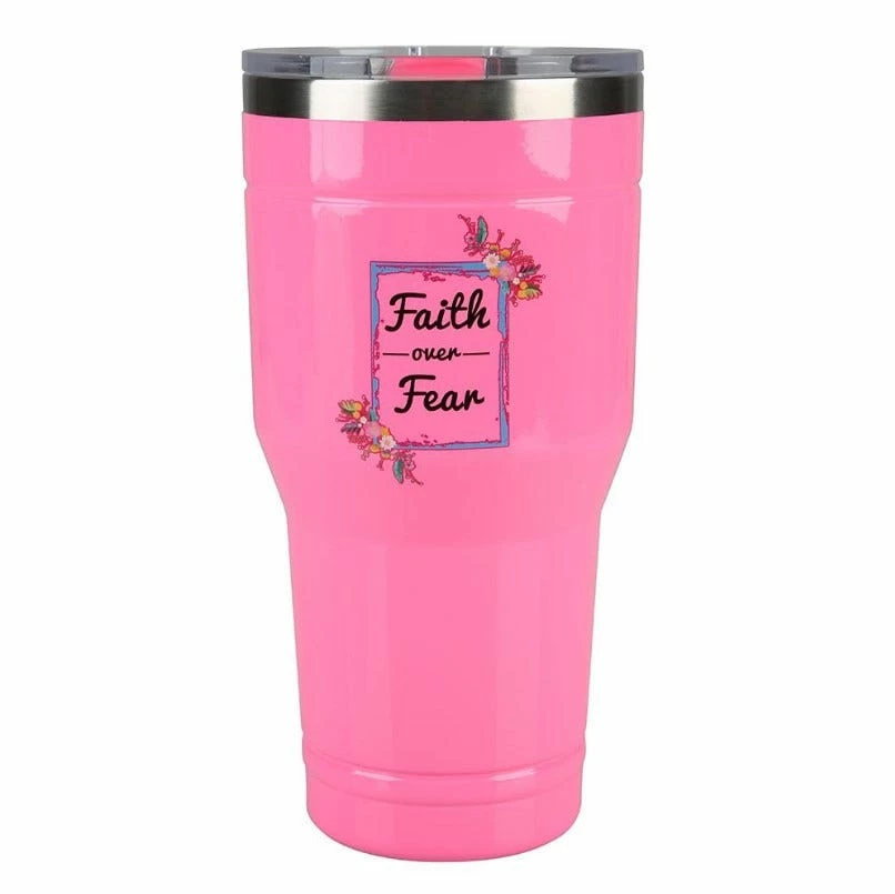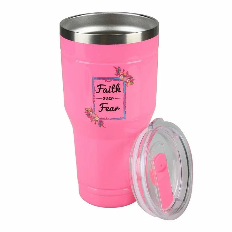 Lincoln Outfitters “Faith Over Fear” 30 oz. Religious Tumbler, White – 89-643-0204 – Tumblers